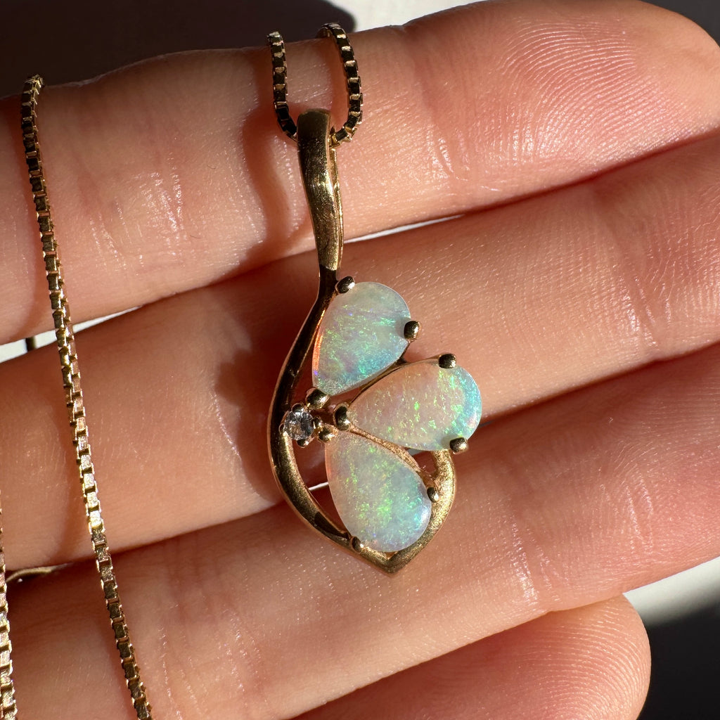 Estate 14kt Gold Opal Diamond Pendant